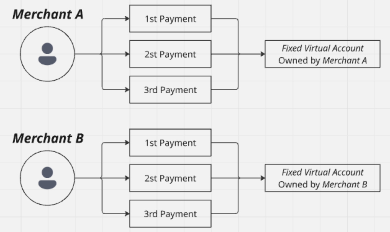 Notice that for each order, none of them are correlated to each other. So a non-fixed virtual account is tied only to a specific payment and thus used only for a single payment.
